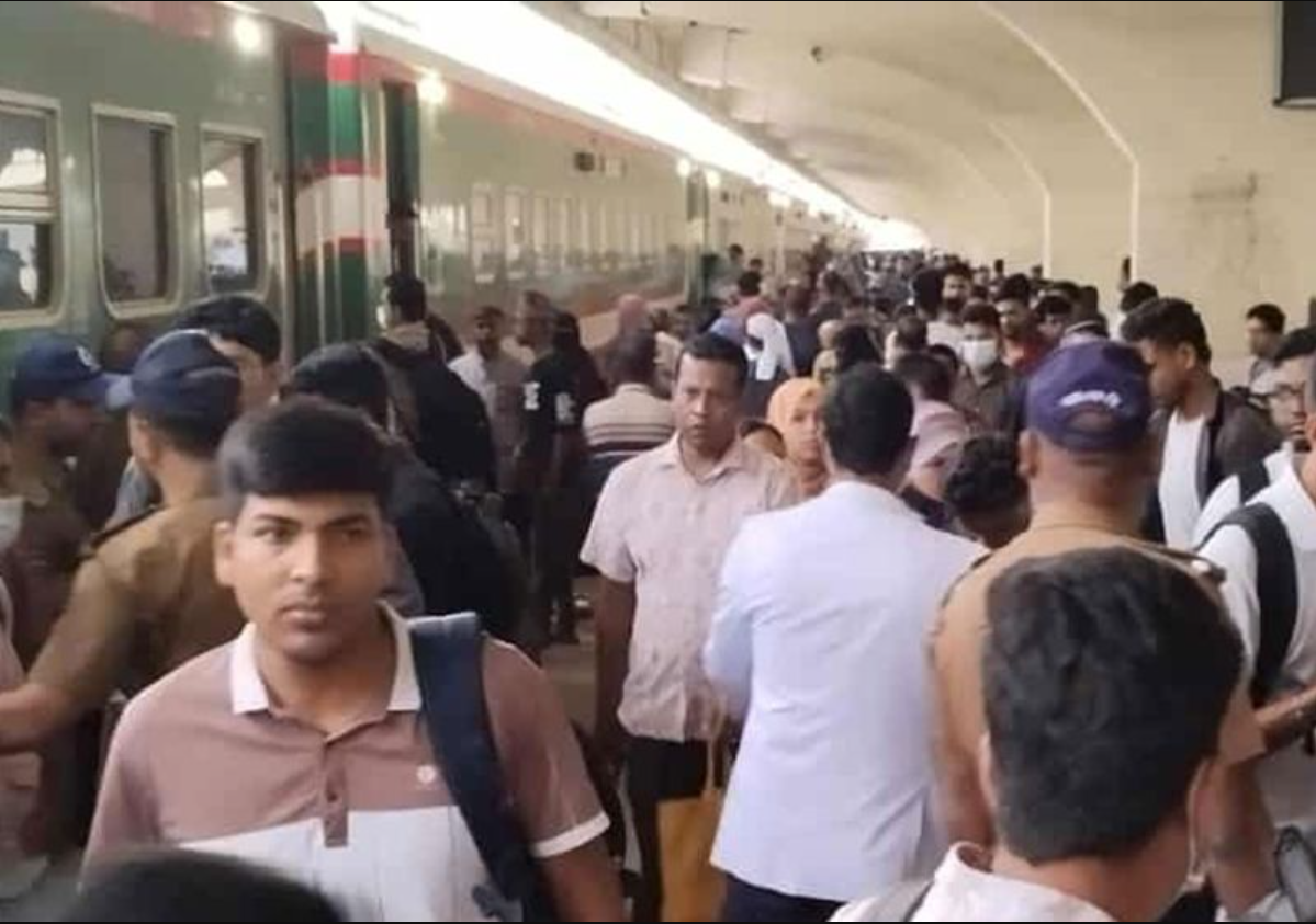 কমলাপুর রেল স্টেশনে দেখা গেছে, সকাল থেকেই ট্রেন বোঝাই যাত্রীরা ঢাকায় প্রবেশ করছেন। ট্রেনের নির্ধারিত আসন সংখ্যার পাশাপাশি অনেকে কামরায় দাঁড়িয়ে ঢাকা এসেছেন। কেউ কেউ আবার ট্রেনের ছাদে করেও ঢাকায় প্রবেশ করেছেন।