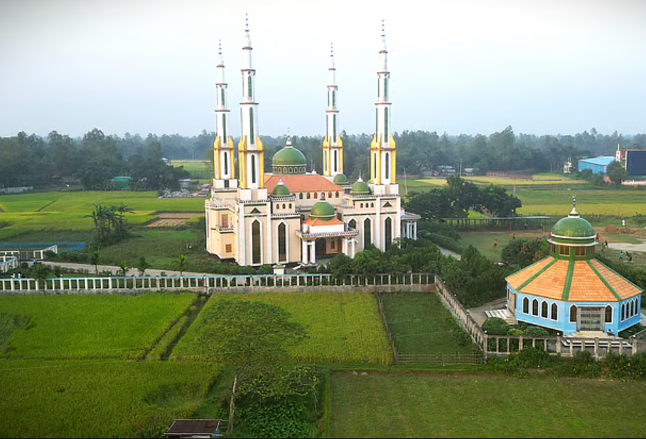 নির্মাতা ও স্থানীয় একাধিক সূত্রে জানা যায়, ২০১৮ সালের ১১ মে জুমার নামাজের মাধ্যমে মসজিদটি মুসল্লিদের জন্য উন্মুক্ত করে দেওয়া হয়। পাঁচ একর জায়গাজুড়ে এটি নির্মিত হয়েছে। ব্যক্তিগত উদ্যোগে মাহবুবুল হক নামের এক ব্যক্তি এটি নির্মাণ করেন।