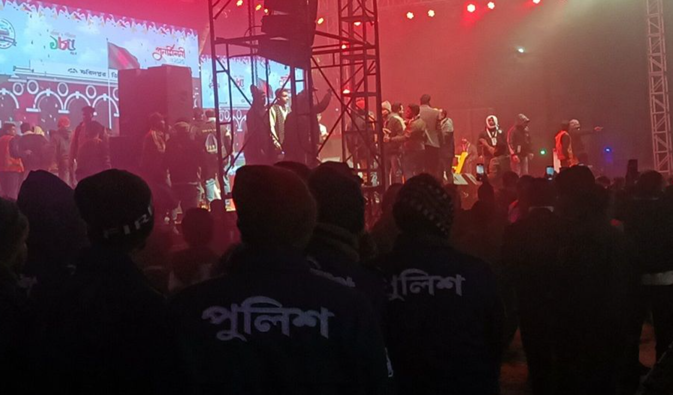 ফরিদপুর কোতয়ালী থানার ভারপ্রাপ্ত কর্মকর্তা (ওসি) মোহাম্মদ শহিদুল ইসলাম বলেন, বহিরাগতদের ঢুকতে না দেওয়ায় হালকা বিশৃঙ্খলা হয়েছে। পুলিশ কাজ করেছে। পরিস্থিতি স্বাভাবিক রাখতে শেষ পর্যন্ত পুরো পরিবেশনা বাতিল করা হয়।