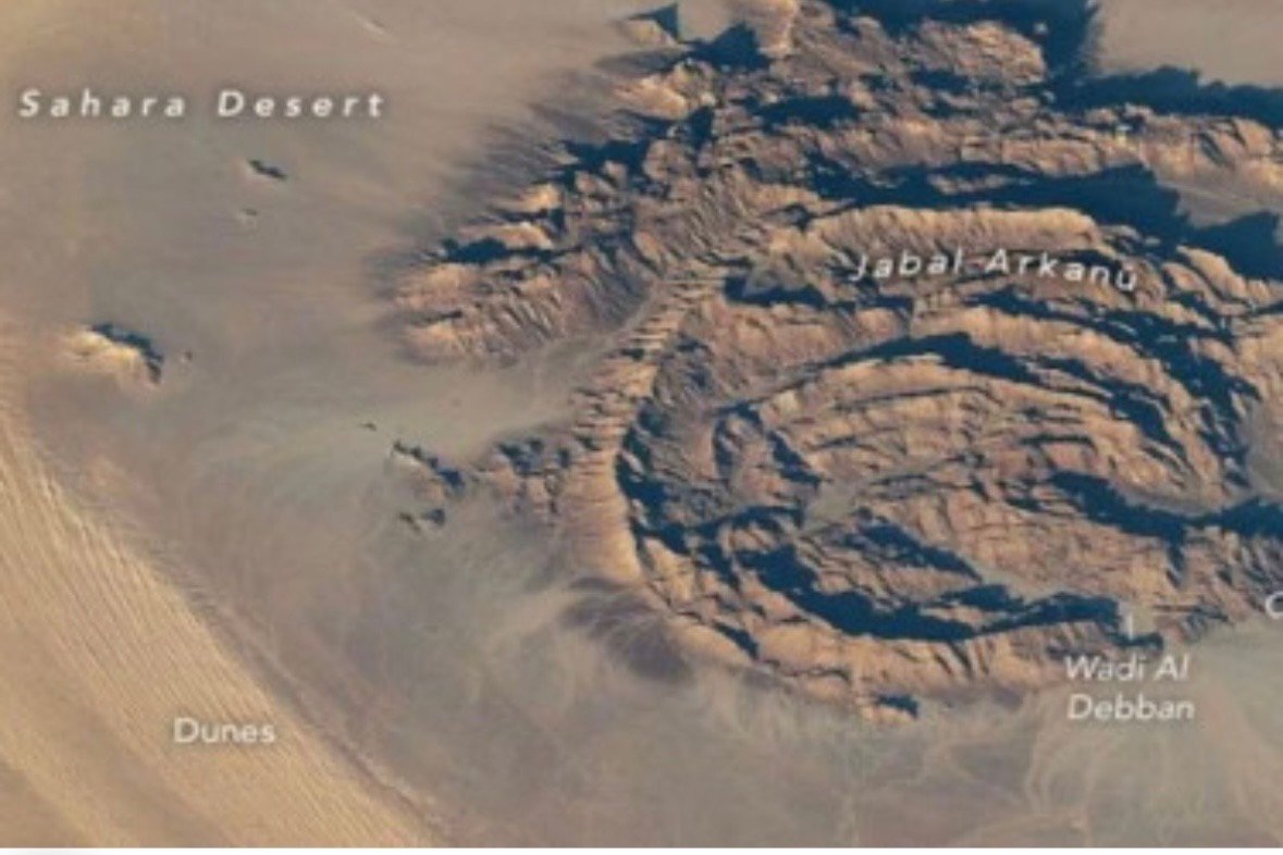 আফ্রিকার সাহারা মরুভূমির অন্যতম শুষ্ক এলাকায় হঠাৎই চোখে পড়ে কালো পাথুরে পাহাড়। এদের মাঝেই রয়েছে জাবাল আরকানু যার গোলাকার বৃত্ত-সদৃশ গঠন ভূতাত্ত্বিকভাবে অত্যন্ত বিরল। আন্তর্জাতিক মহাকাশ স্টেশন (আইএসএস) থেকে তোলা নতুন ছবিতে এই পাহাড়ি কাঠামো আরও স্পষ্টভাবে ধরা পড়েছে।