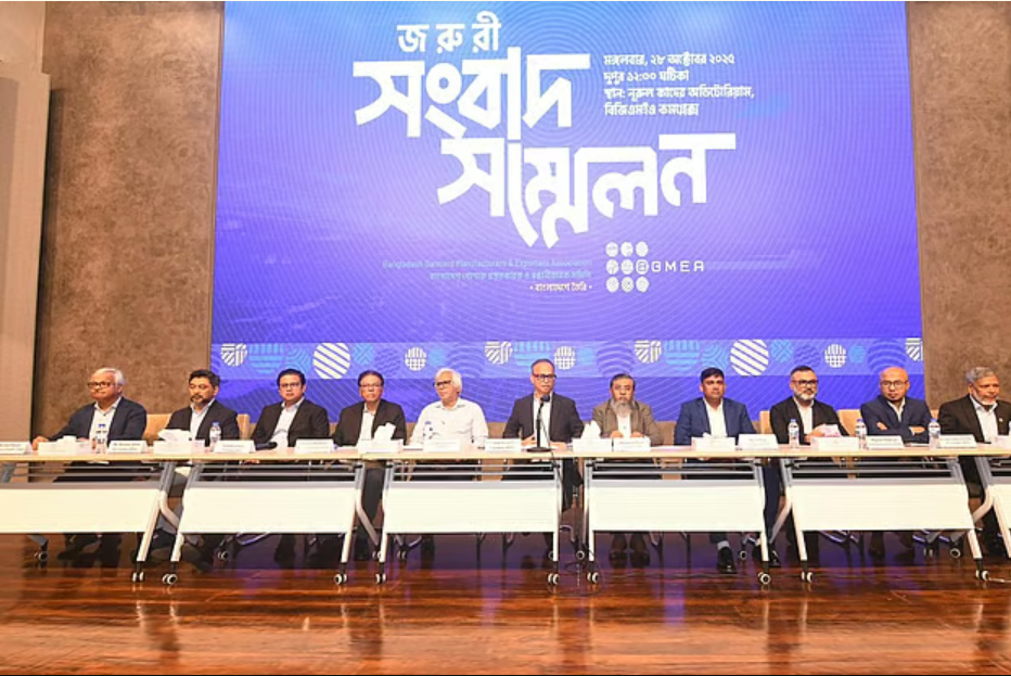 রাজধানীর উত্তরায় বিজিএমইএ ভবনে আজ মঙ্গলবার সাত ব্যবসায়ী সংগঠনের যৌথ সংবাদ সম্মেলনে এই উদ্বেগের কথা জানান সংগঠনগুলোর নেতারা। সংগঠনগুলো হলো পোশাকশিল্প মালিকদের সংগঠন বিজিএমইএ, নিট পোশাকশিল্প মালিকদের সংগঠন বিকেএমইএ, গার্মেন্টস এক্সেসরিজ অ্যান্ড প্যাকেজিং প্রস্তুতকারক ও রপ্তানিকারকদের সংগঠন বিজিএপিএমইএ, ঢাকা চেম্বার, বাংলাদেশ চেম্বার অব ইন্ডাস্ট্রিজ (বিসিআই), লেদারগুডস অ্যান্ড ফুটওয়্যার ম্যানুফ্যাকচারার্স অ্যান্ড এক্সপোর্টার্স অ্যাসোসিয়েশন (এলএফএমইএবি) এবং বাংলাদেশ অ্যাসোসিয়েশন অব ফার্মাসিউটিক্যাল ইন্ডাস্ট্রিজ (বাপি)।